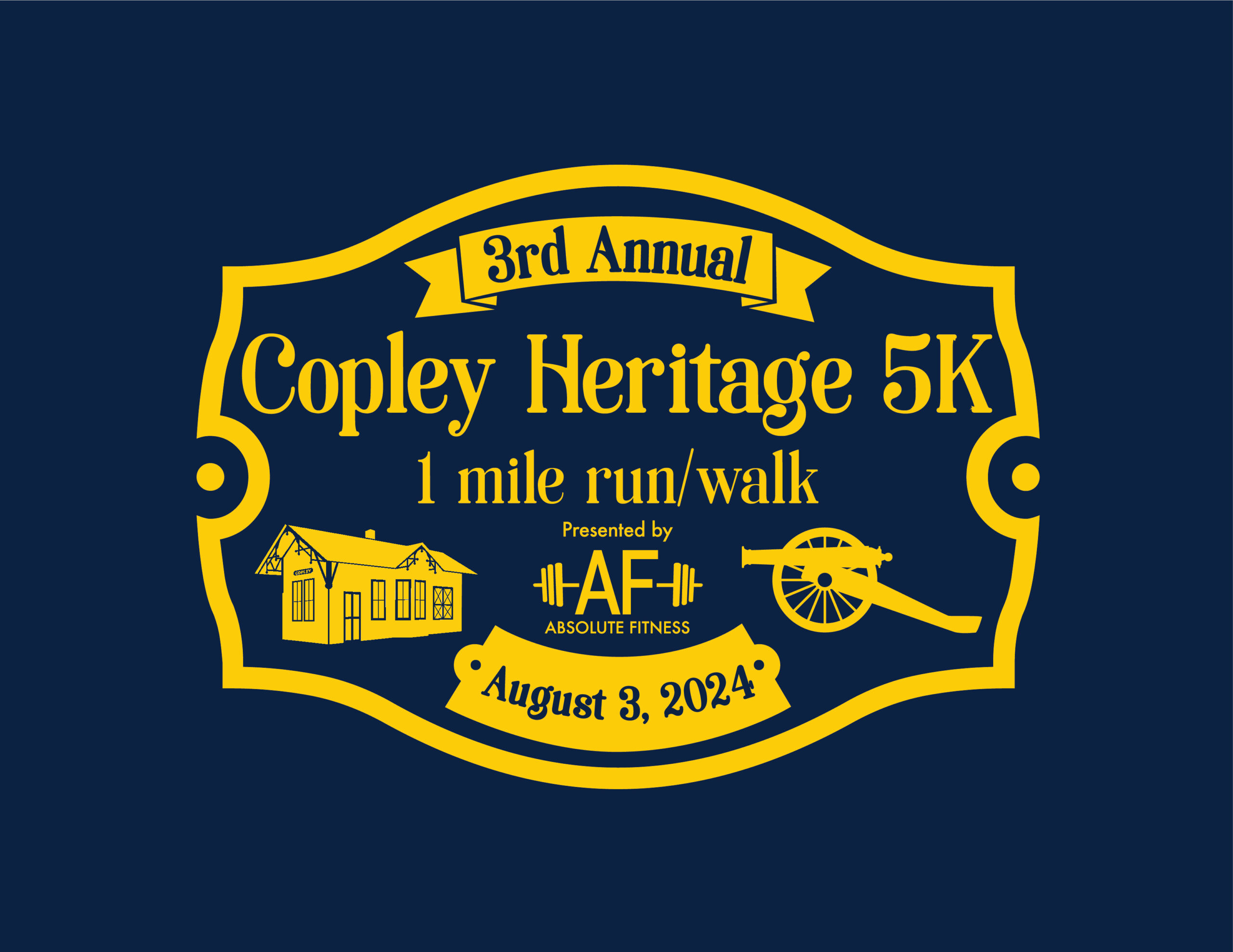 Come run or walk the 4th annual Heritage 5k! Copley Township celebrates the founding of our Township every year with a day of celebration. This year we are excited to continue the Copley Heritage 5k which winds through the streets of Copley Township. Run or walk, all proceeds benefit Copley Outreach Center.